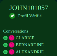 A Droite : Vous voyez votre profil. La vérification de votre profil vous permet d'historiser vos actions et surtout de retrouver vos contacts. Les autres préfèrent aussi contacter des gens dont le profil est vérifié. Les profils vérifiés apparaissent clairement dans la liste des connectés ( On voit aussi toutes les conversations en cours. Il suffit de cliquer sur la bulle pour passer d'une conversation à l'autre. |
