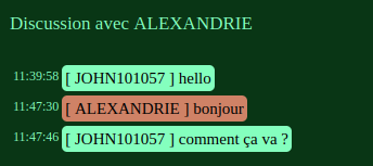 Au Centre : C'est la partie discussion ; vous voyez tous les messages échangés avec la personne séléctionnée. En bas, vous tapez votre message et faîte entrer pour l'envoyer. Vous pouvez ajouter des smileys et envoyer des photos aussi.